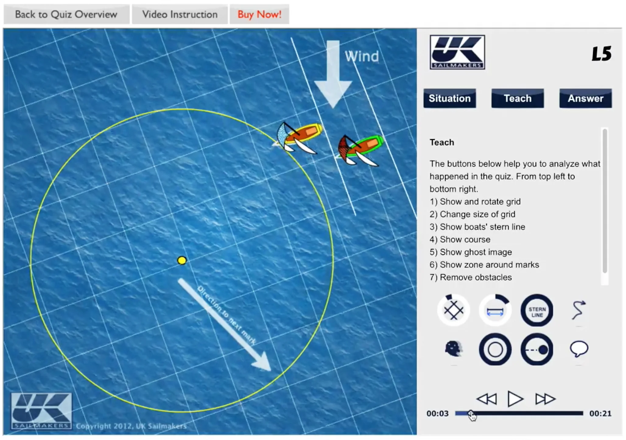 UK Sailmakers’ rules guru Butch always says that a good working knowledge of the rules will earn you places at major regattas. To help sailors learn the racing rules of sailing, which are not easily learned by reading the rule book, UK Sailmakers has created an animated program that makes the learning process easier. This video shows some of the tools and techniques for teaching the rules you’ll find in our program, which sells for $55 at the UK Sailmakers online store: http://www.uksailmakers.com/store/