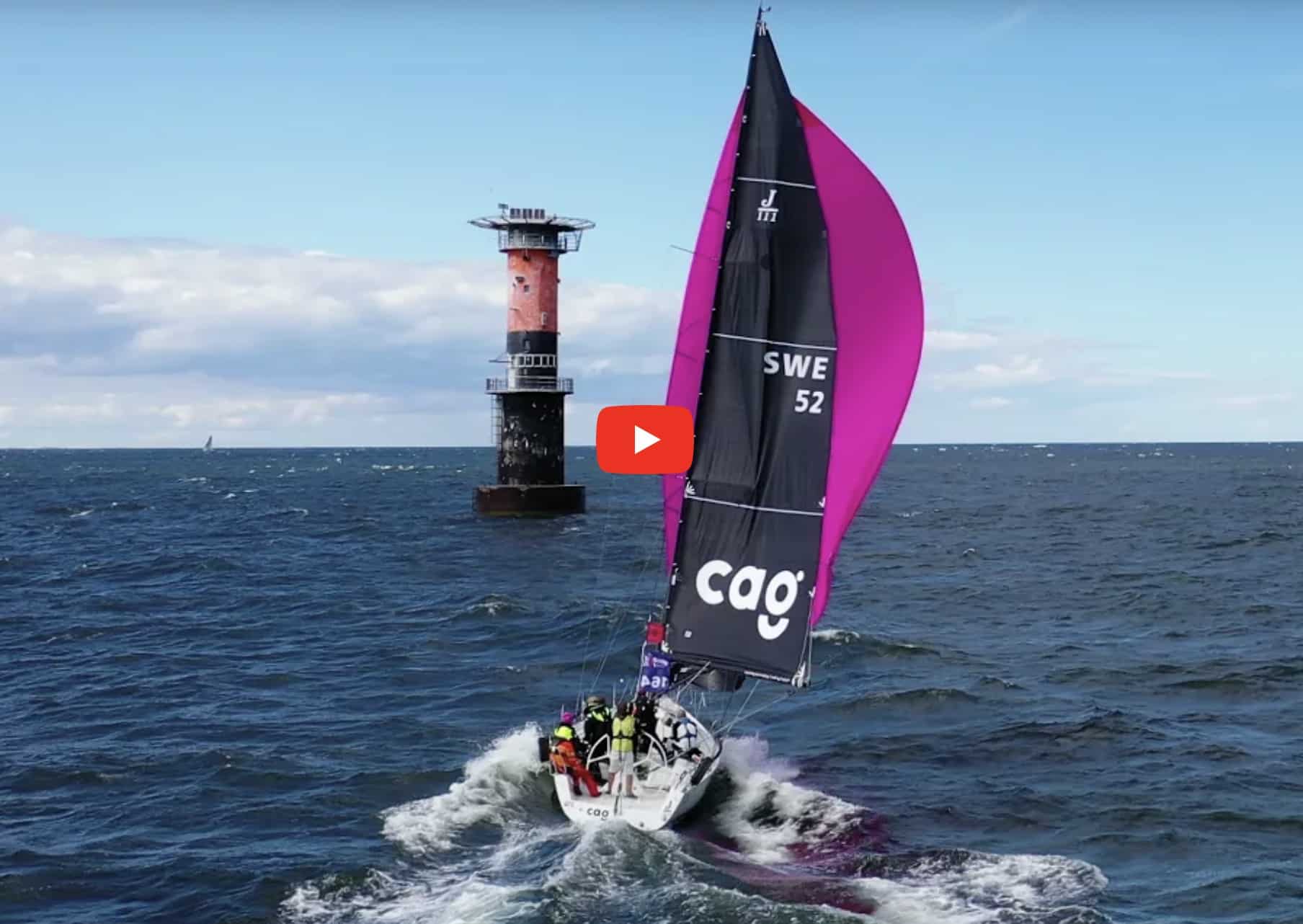 The letterbox spinnaker takedown is the safest spinnaker drop when sailing offshore. It keeps people off the bow, keeps the forward hatch closed, and it prevents the sail from getting away from the crew. Here is a good drone clip shot by Warner Nickerson of the J/111 C.A.G. letterboxing her A5 going around the Alma Grund Lighthouse, the last turning mark of the 350-mile AF Offshore race, also known as the Gotland Runt or Around Gotland Race. The second clip of a letterbox takedown shot on the Santa Cruz 70 WESTERLY after she crossed the finish line of the 2200-mile Pacific Cup in 2018. After nine days of racing, the crew takes down the 250 square meter asymmetrical for the last time – on that race.