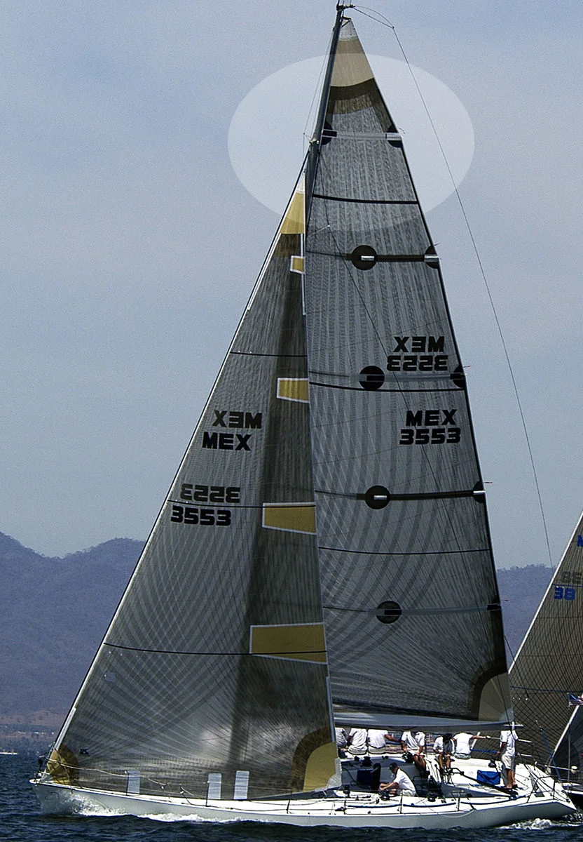 The Powerhead is a faster sail than a standard mainsail because the full-length top batten creates more roach. This extra area toward the top of the sail enables a more effective aerodynamical shape that allows a boat to point higher upwind and gives more sail area for sailing downwind.
