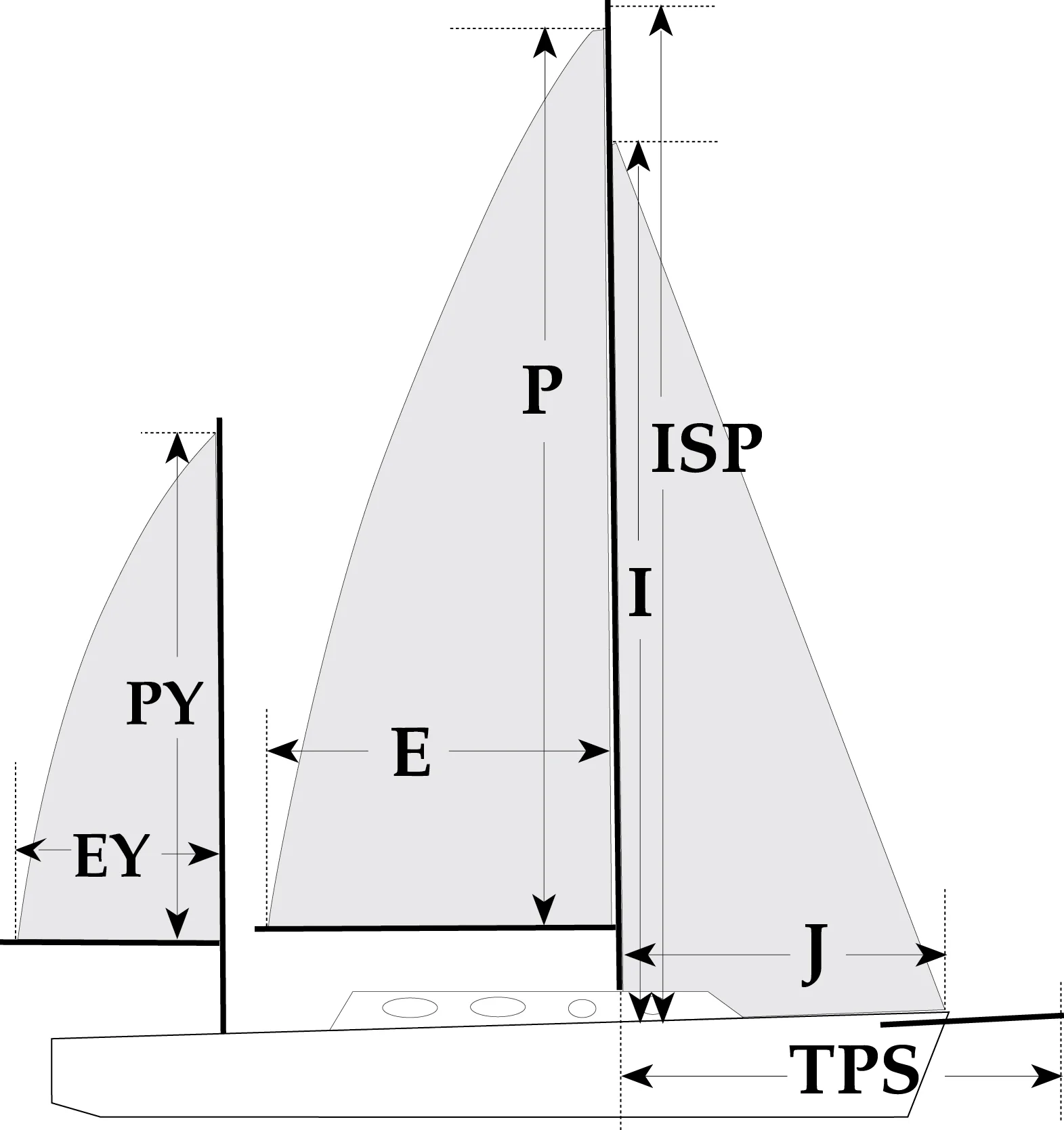 “PY” and “EY” are, respectively the luff length and foot length of the mizzen of a yawl or ketch mea-sured in the same manner as for the mainsail.
