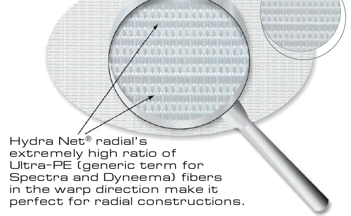 The tight weave of Ultra-PE warp yarns paired with high tenacity polyester yarns gives Hydra Net® Radial superior shape retention when used in a tri-radial panel layout. And there are other benefits of these sails: the fabric has a soft, working “hand,” and they are white, so they look just like a traditional Dacron sail. Hydra Net® Radial cloth is also higher in “tear strength” and is much stronger than any woven polyester. This means that these sails can be lighter than Dacron sails of equal strength, yet they hold their shape better over the life of the sail.