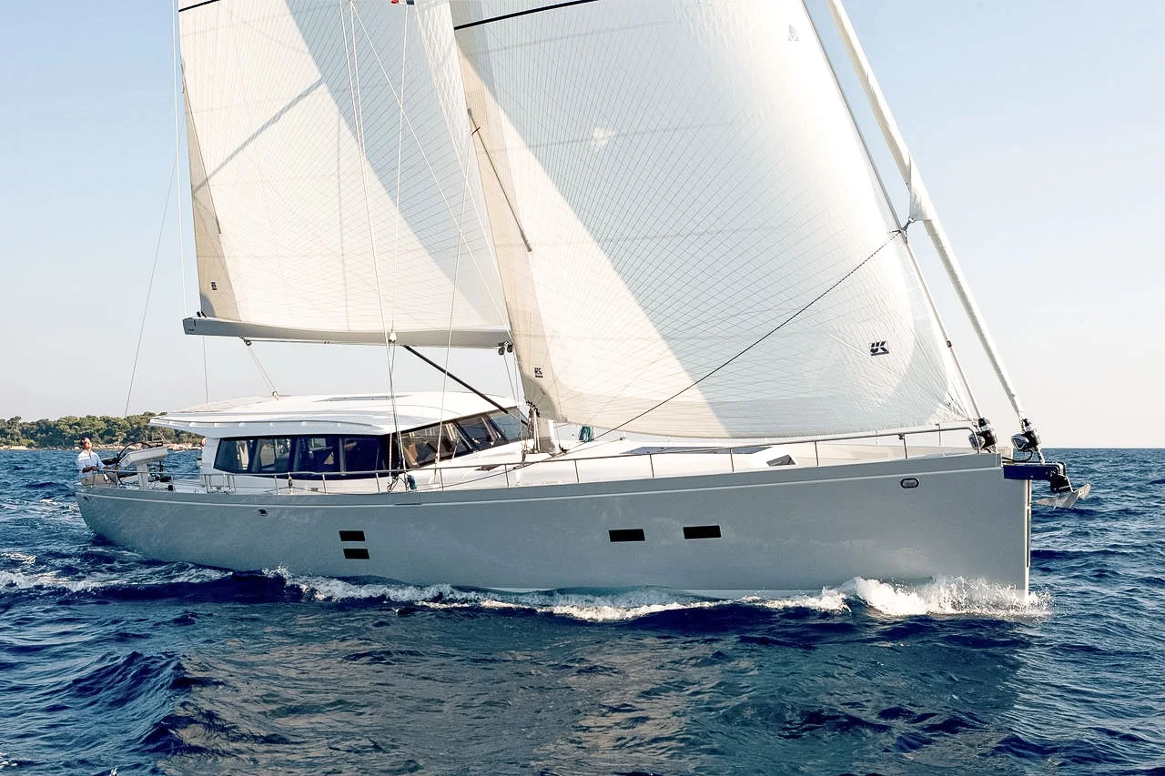 A 31-foot cruiser-racer with a set of Tape-Drive silver sails. Click to enlarge.